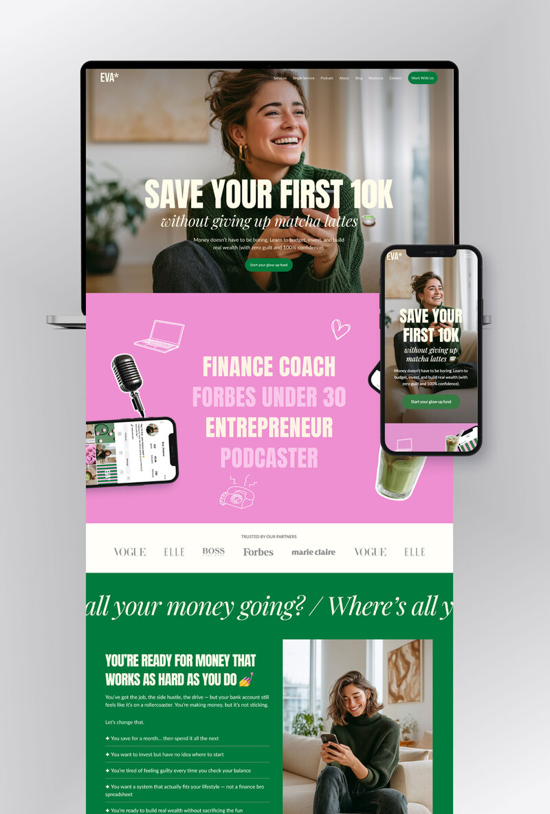 A bold, strategic Showit website template for coaches, podcasters, and bloggers who want to grow online — and look professional doing it. Built with both style and strategy, this template helps you share your message, attract the right audience, and sell your offers with confidence.